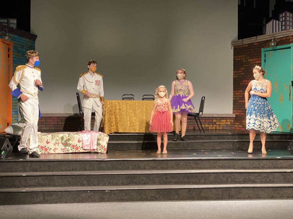 Princess Bee, her mum the Queen, her dad the King, the Royal Big Sister, and the Royal Big Brother at last came to life on stage, and this story has not just a happy ending but continuing happiness. The first full production occurred on Friday, September 7 and 8, 2018, at the Lancaster Public Library. A second production toured campsites in Michigan in the summer of 2019. A third was one of 5 scripts chosen for the Central Florida Community Arts Youth Theatre Festival, performed live without an audience and virtually streamed in October, 2020. Photo of this masked, socially distanced production above.